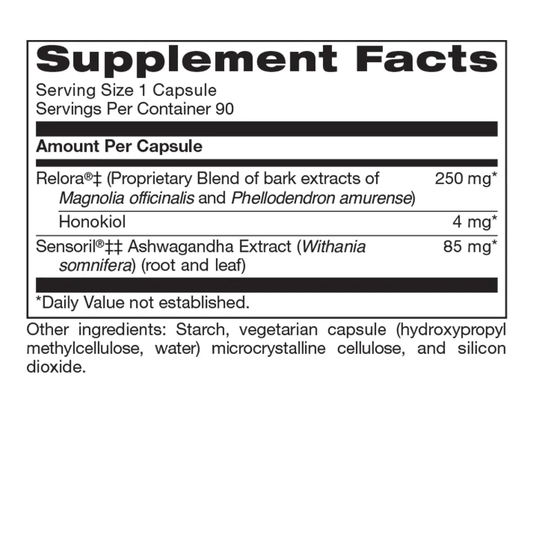 Relora® — is a proprietary blend of Magnolia officinalis and Phellodendron amurense that can calm the mind, support a healthy stress response, and lessen stress eating.*