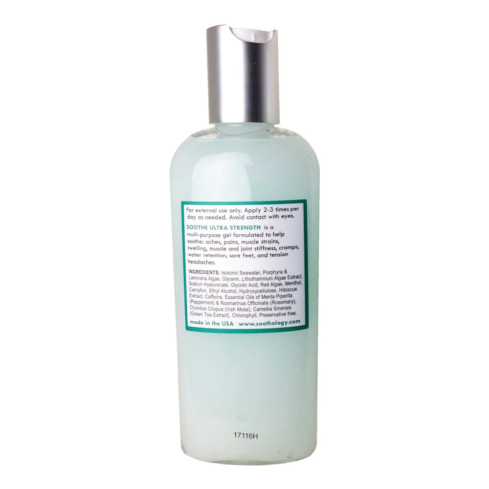 Soothe Ultra Strength is a marine-based formula rich in red and brown marine algaes and herbal extracts, including rosemary extract and essential oils of peppermint, that help reduce inflammation, relieve areas of discomfort, and support muscle recovery. Soothe Ultra Strength is preservative free.
